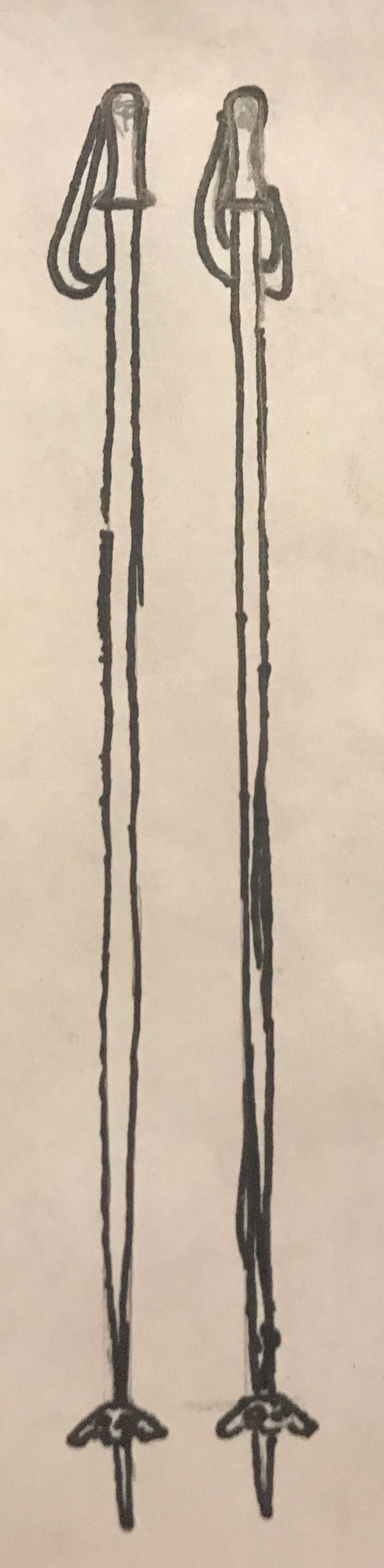 FINISHED POLES WITH RECYCLED SKI BASKETS AND SKI GRIPS